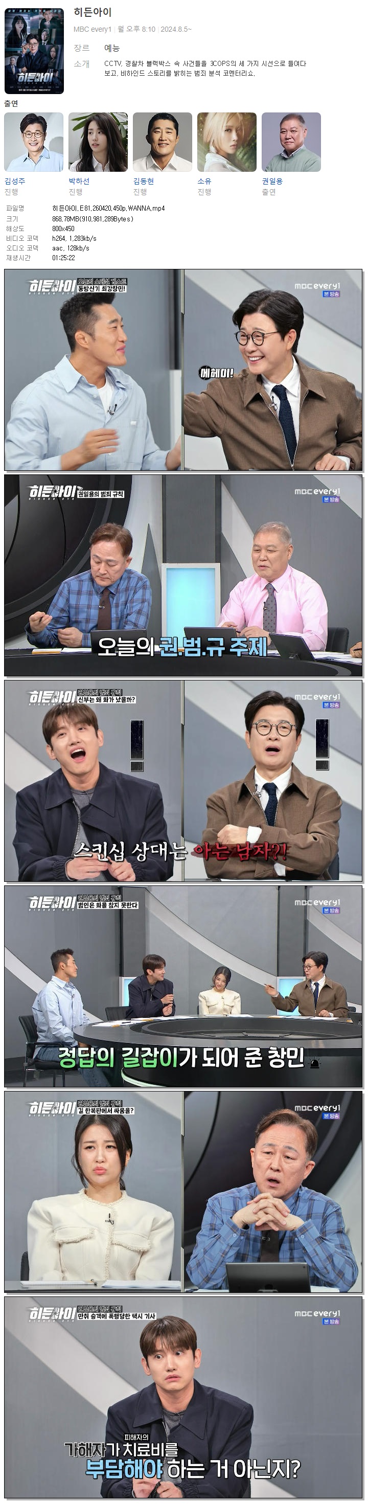 | [MBC Every1] 히든아이.E81.260420.450p.WANNA[김성주, 박하선].mp4 | 868.8 M | 01:25:22 | 800x450 |