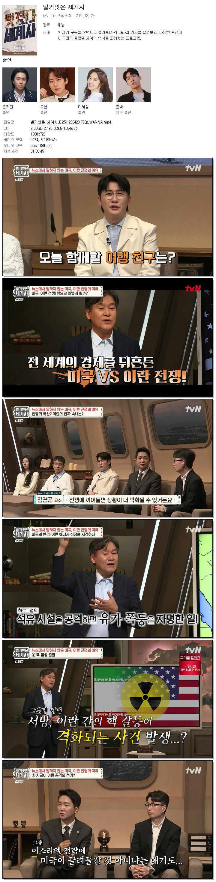 | [TVN] 벌거벗은 세계사.E251.260420.720p.WANNA[은지원, 규현].mp4 | 2 G | 01:30:45 | 1280x720 |