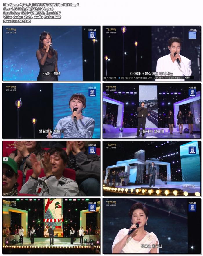 | 가요무대.E1956.260420.720p-NEXT.mp4 | 1.1 G | 00:52:45 | 1280x720 |