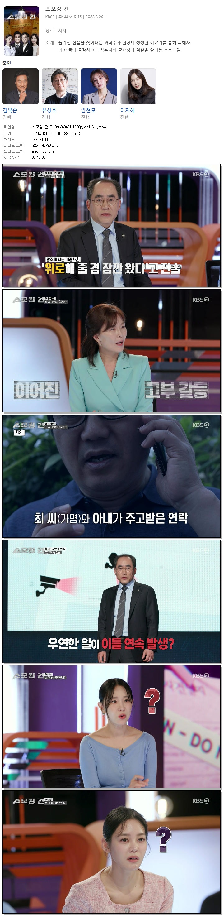 | [KBS2] 스모킹 건.E139.260421.1080p.WANNA[김복준, 안현모].mp4 | 1.7 G | 00:49:36 | 1920x1080 |