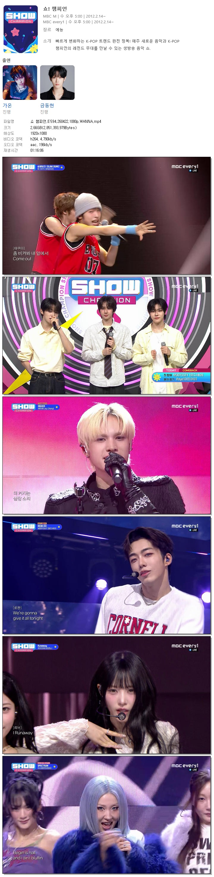 | [MBC Every1] 쇼 챔피언.E594.260422.1080p.WANNA[B1A4, 앰퍼샌드원].mp4 | 2.7 G | 01:16:06 | 1920x1080 |