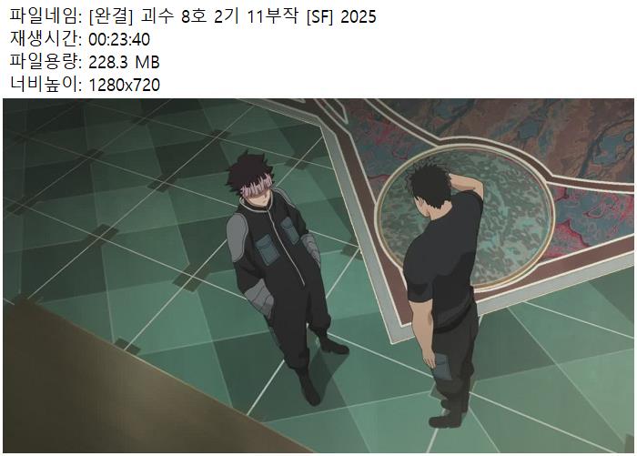 | 괴수 8호 2기 - 01.mp4 | 228.3 M | 00:23:40 | 1280x720 |