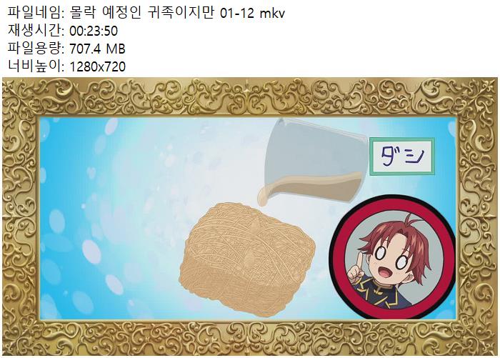 | 몰락 예정인 귀족이지만 한가하니까 03.mkv | 708.7 M | 00:23:50 | 1280x720 |