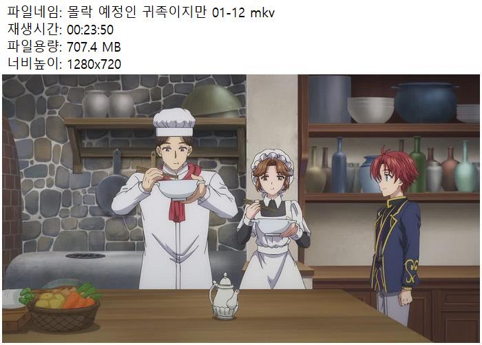 | 몰락 예정인 귀족이지만 한가하니까 01.mkv | 707.4 M | 00:23:50 | 1280x720 |