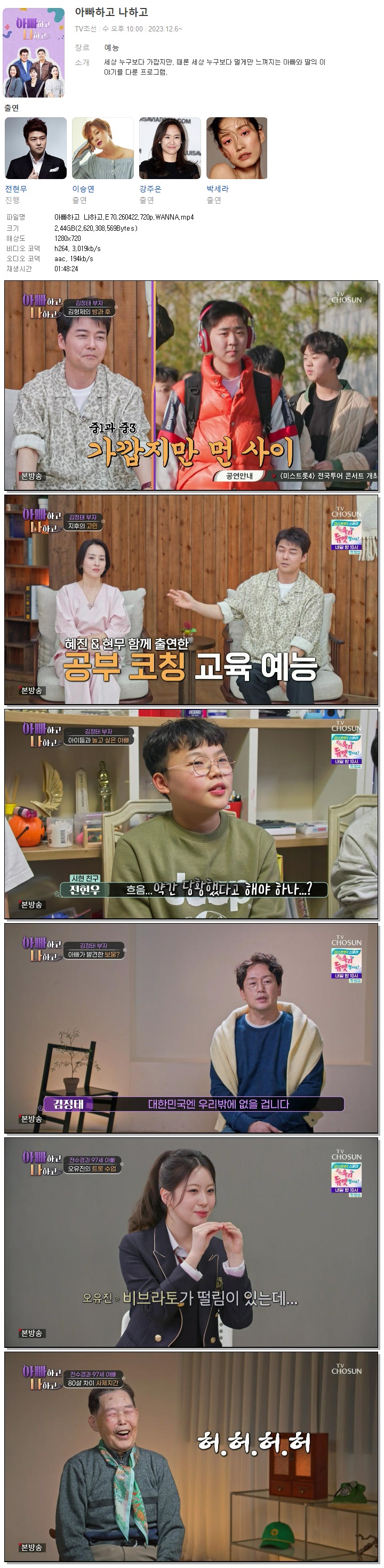 | [TV조선] 아빠하고 나하고.E70.260422.720p.WANNA[김정태, 전수경].mp4 | 2.4 G | 01:48:24 | 1280x720 |
