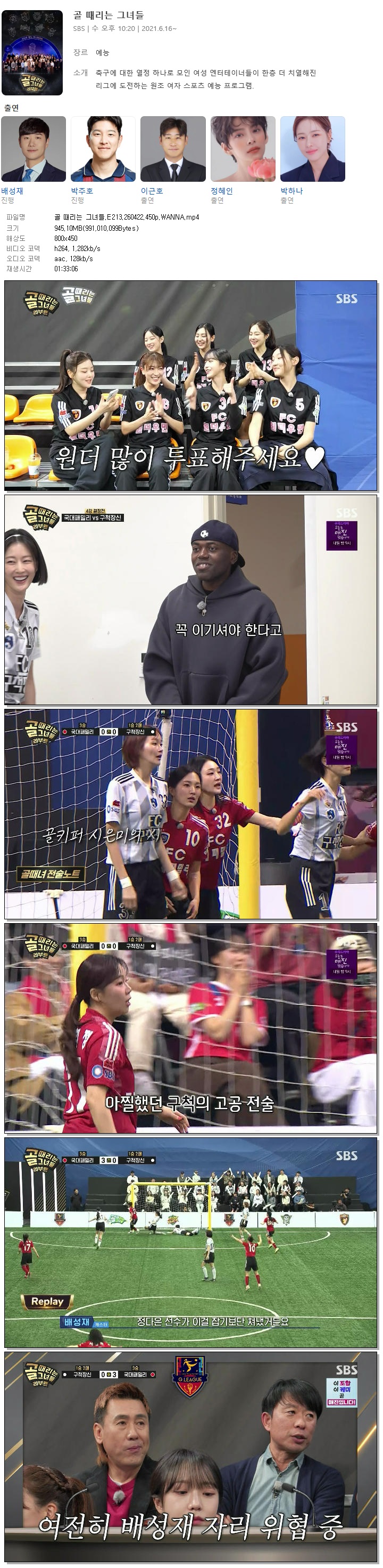 | [SBS] 골 때리는 그녀들.E213.260422.450p.WANNA[박하얀, 이현이].mp4 | 945.1 M | 01:33:06 | 800x450 |