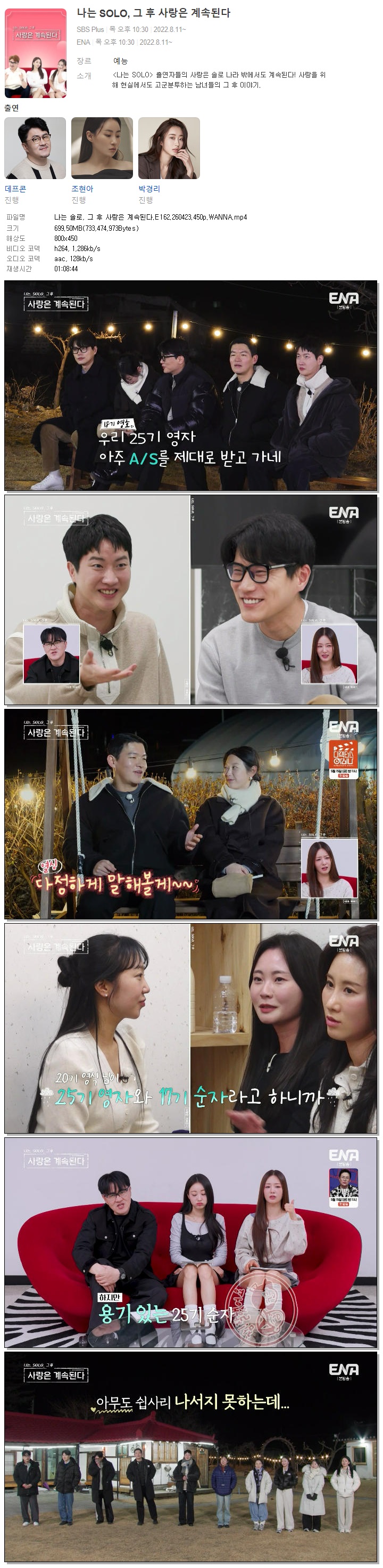 | [ENA] 나는 솔로, 그 후 사랑은 계속된다.E162.260423.450p.WANNA[경리, 보미].mp4 | 699.5 M | 01:08:44 | 800x450 |