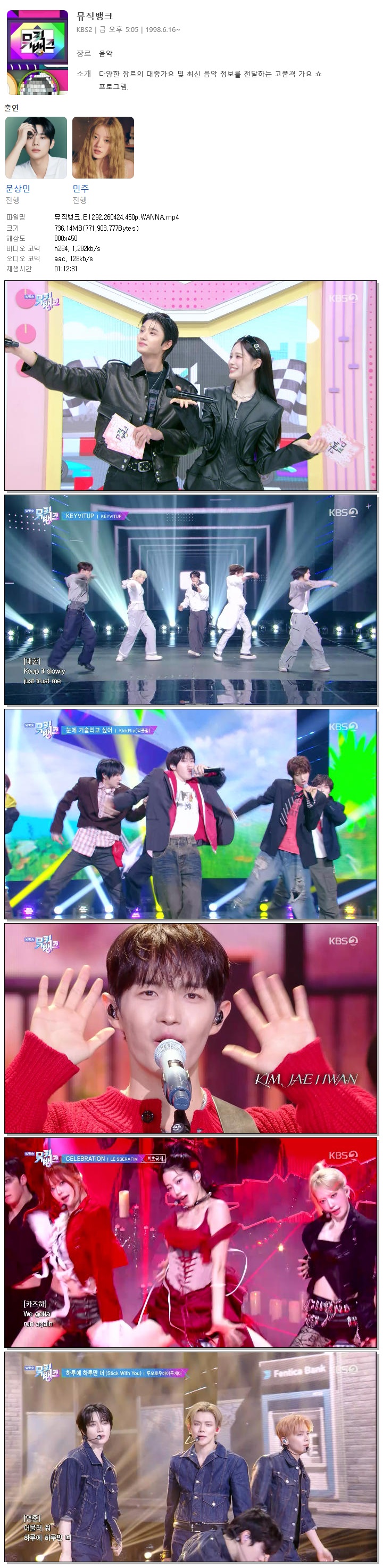 | [KBS2] 뮤직뱅크.E1292.260424.450p.WANNA[NCTWISH, 김재환].mp4 | 736.1 M | 01:12:31 | 800x450 |