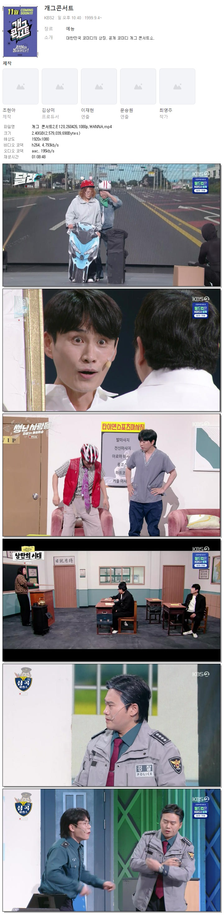 | [KBS2] 개그 콘서트2.E120.260426.1080p.WANNA[신윤승, 박성광].mp4 | 2.4 G | 01:08:48 | 1920x1080 |