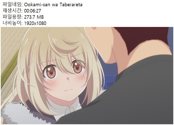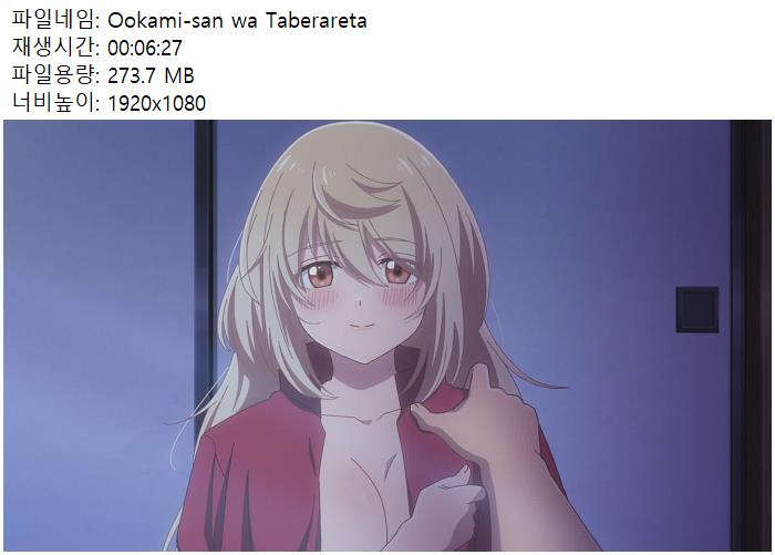 [Ero-AMF]Ookami-san wa Taberaretai - 01v2.mkv 273.7 M 00:06:27 1920x1080