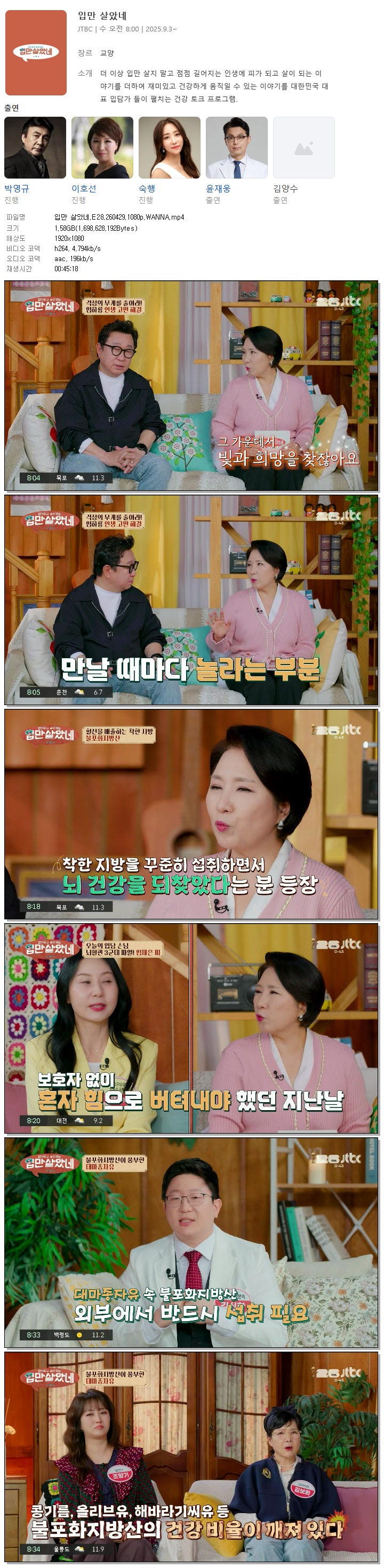 | [JTBC] 입만 살았네.E28.260429.1080p.WANNA[박영규, 이호선].mp4 | 1.6 G | 00:45:18 | 1920x1080 |