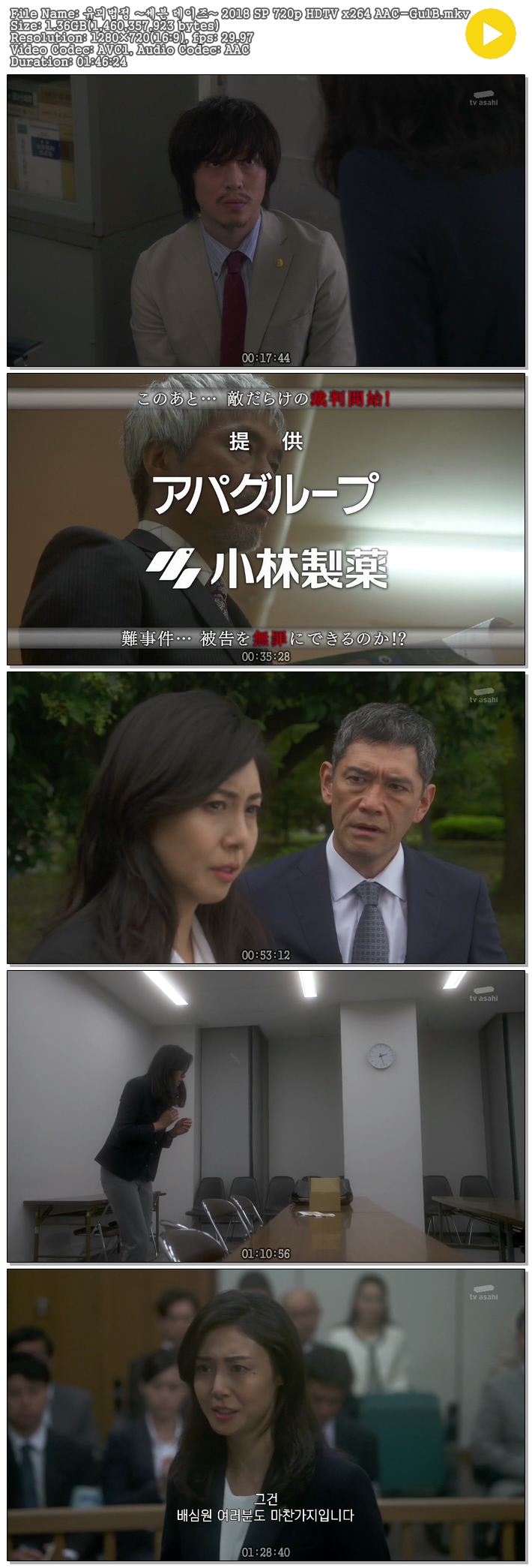 | 유괴법정 ~세븐 데이즈~ 2018 SP 720p HDTV x264 AAC-GulB.mkv | 1.4 G | 01:46:24 | 1280x720 |