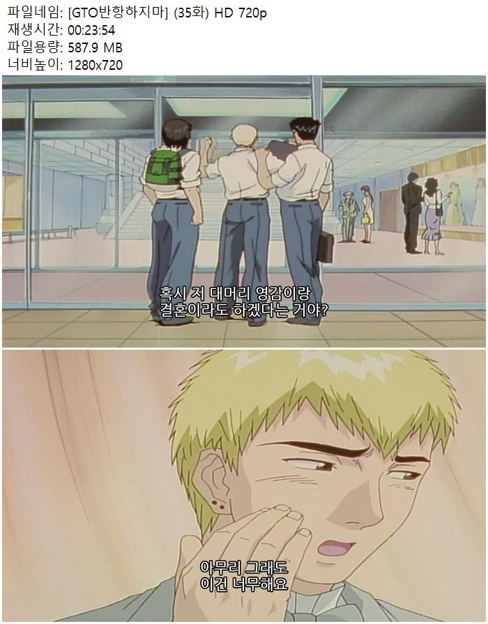 | [GTO반항하지마] (35화) HD 720p.mp4 | 587.9 M | 00:23:54 | 1280x720 |