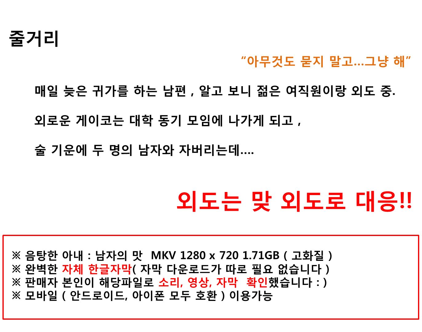 | 음탕한아내-남자의맛(본편).mkv | 1.7 G | 00:59:48 | 1280x720 |