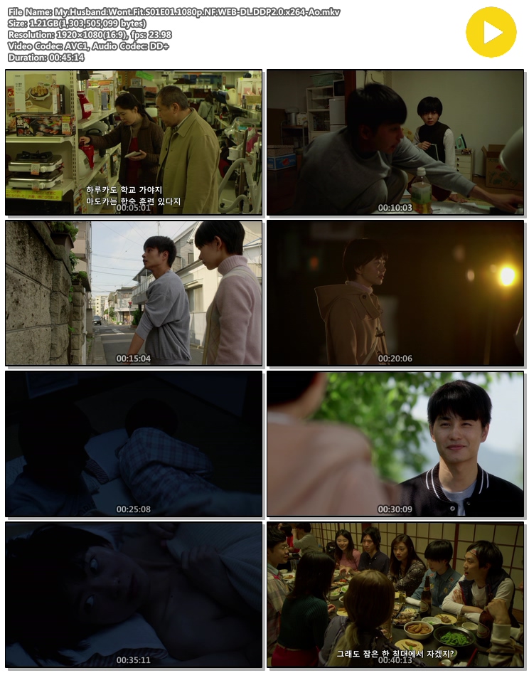 | My.Husband.Wont.Fit.S01E01.1080p.NF.WEB-DL.DDP2.0.x264-Ao.mkv | 1.2 G | 00:45:14 | 1920x1080 |
