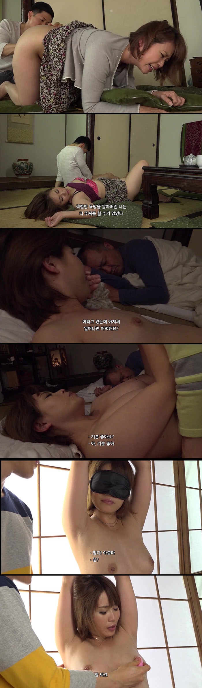 자막 [ 유리코 ] 잠든 남편옆에서 조-교 당하는 육덕녀의 손맛