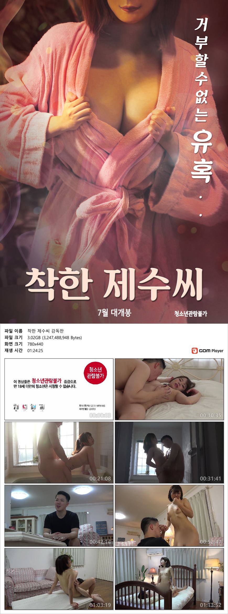 | 착한 제수씨 감독판.mp4 | 3 G | 01:24:25 | 1920x1080 |