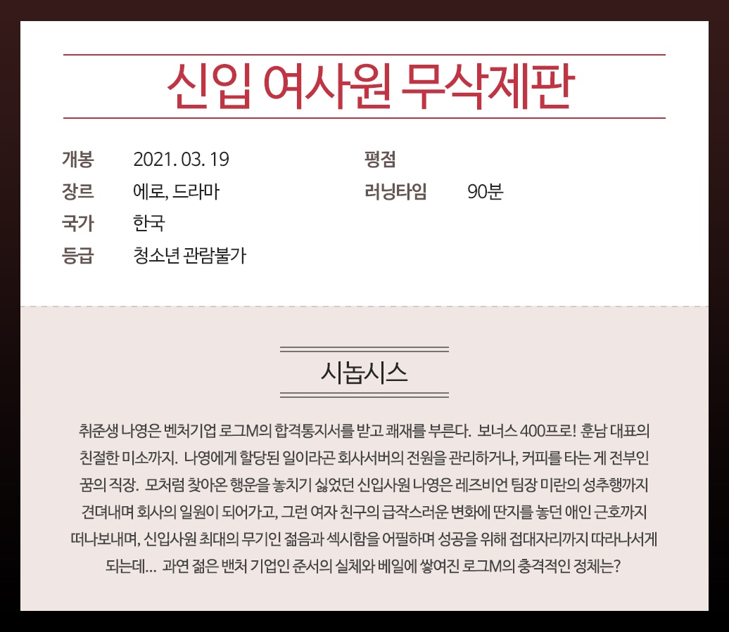 본 정보내용은 청소년유해매체물로서 정보통신망이용촉진 및 정보보호 등에 관한 법률 및 청소년보호법의 규정에 의하여 만 19세 미만의 청소년이 이용할 수 없습니다. 아동·청소년 음란물(야동,포르노)을 제작·배포·소지한 자는 형사 처벌을 받을 수 있습니다.