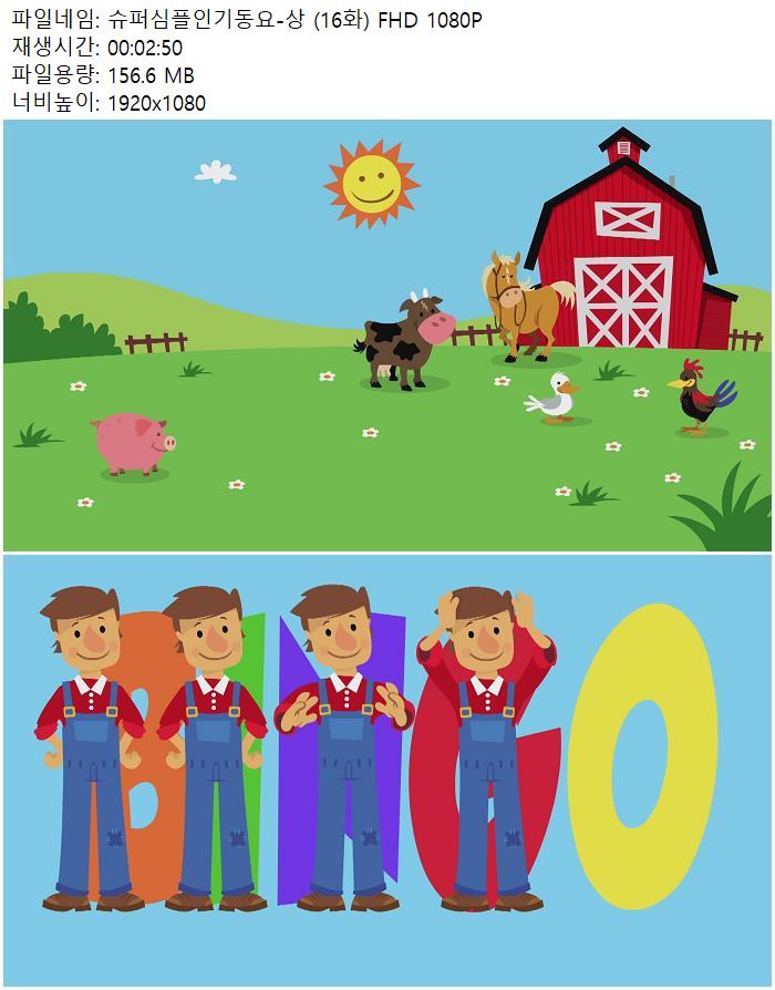 | 슈퍼심플인기동요-상 (16화) FHD 1080P.mp4 | 156.6 M | 00:02:50 | 1920x1080 |