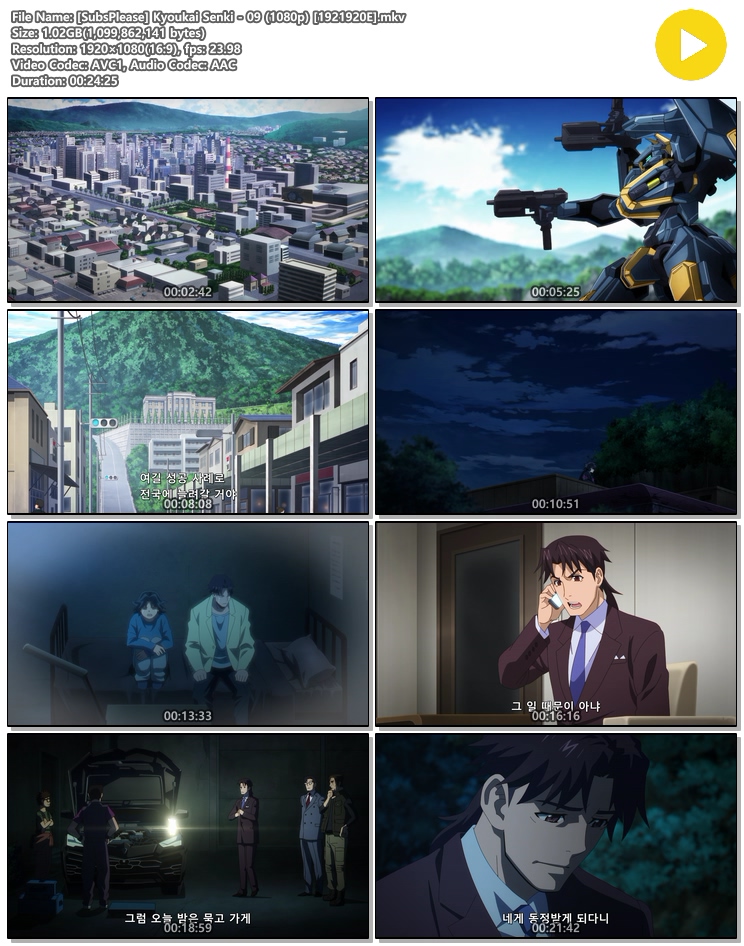 | [SubsPlease] Kyoukai Senki - 09 (1080p) [1921920E].mkv | 1 G | 00:24:25 | 1920x1080 |