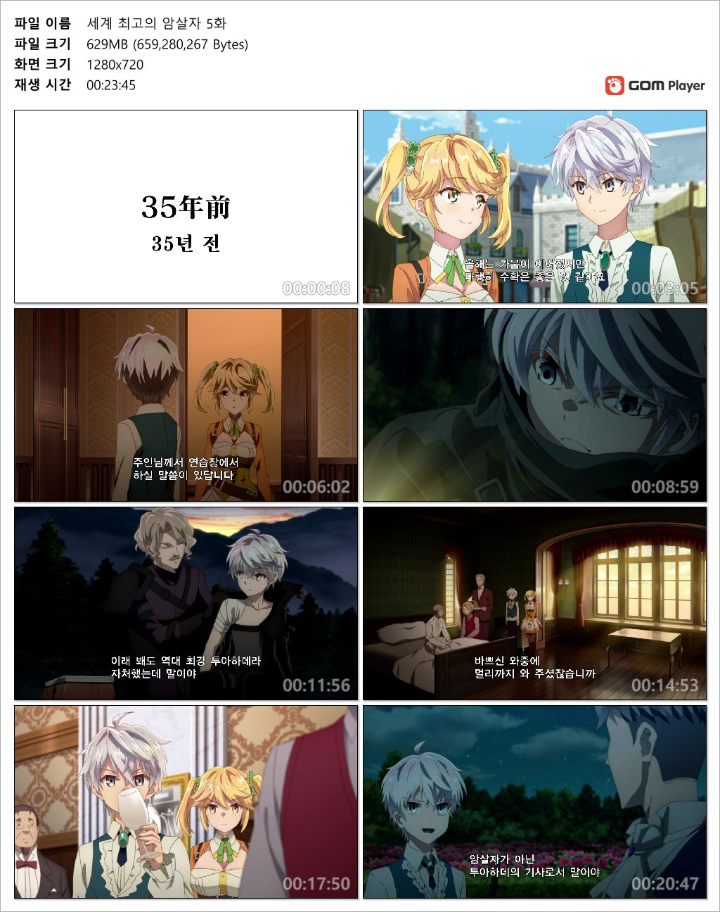 | 세계 최고의 암살자 5화.mp4 | 628.7 M | 00:23:45 | 1280x720 |