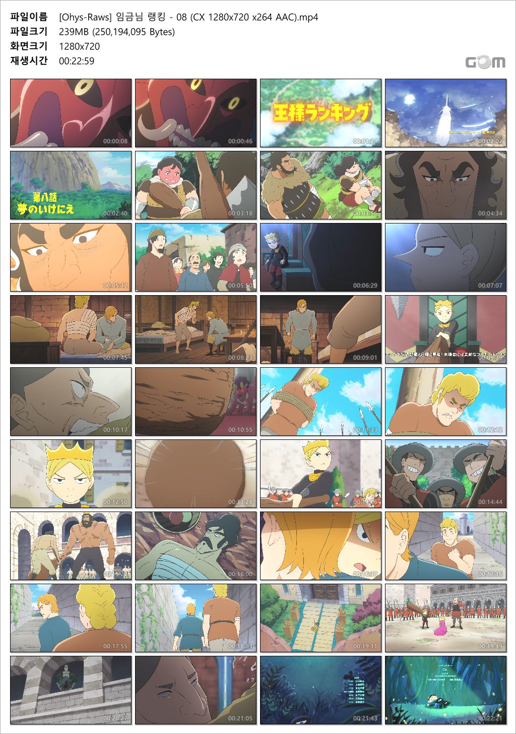 | [Ohys-Raws] 임금님 랭킹 - 08 (CX 1280x720 x264 AAC).mp4 | 238.6 M | 00:22:59 | 1280x720 |