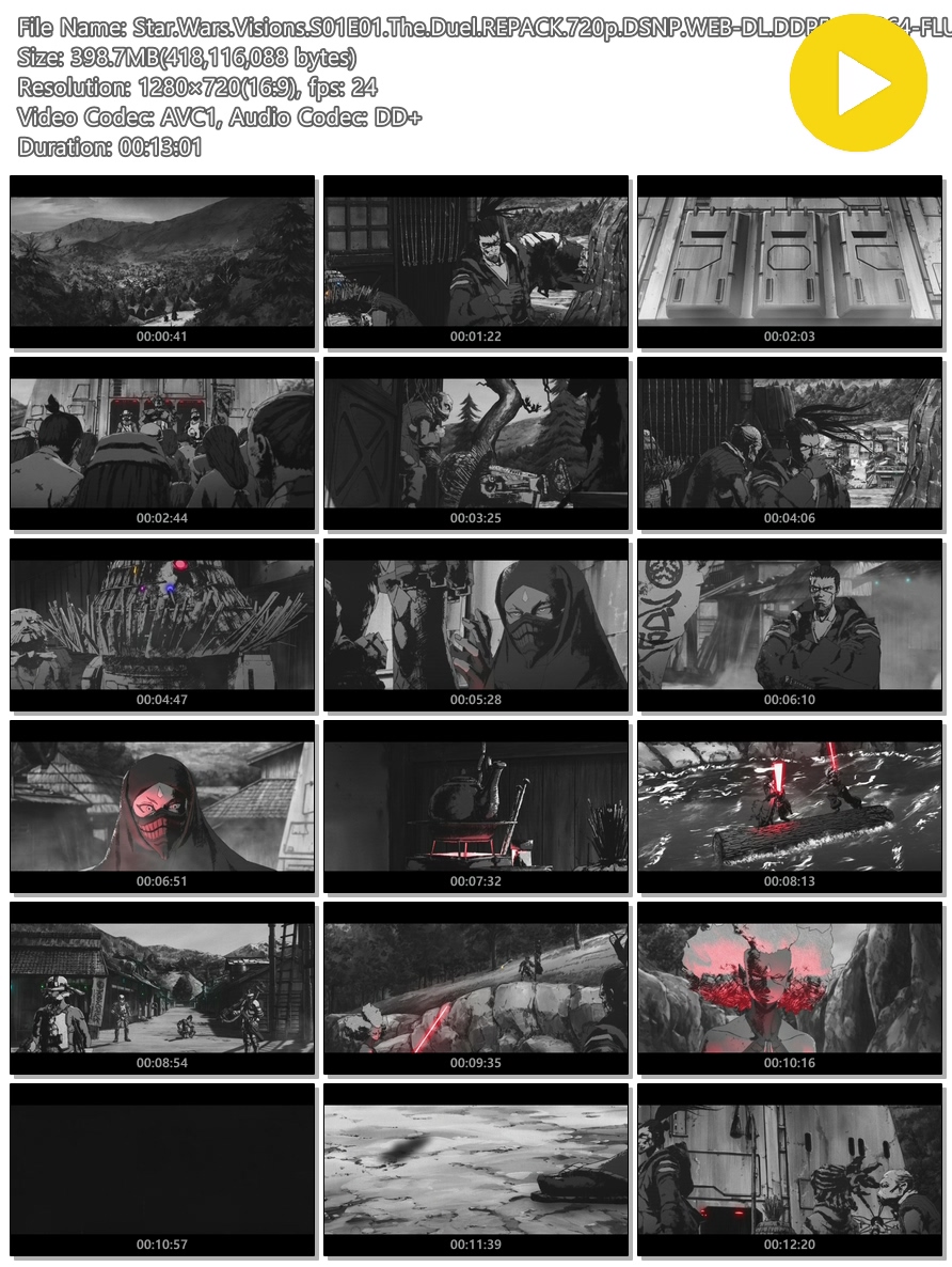 | Star.Wars.Visions.S01E01.The.Duel.REPACK.720p.DSNP.WEB-DL.DDP5.1.H.264-FLUX.mkv | 398.7 M | 00:13:01 | 1280x720 |