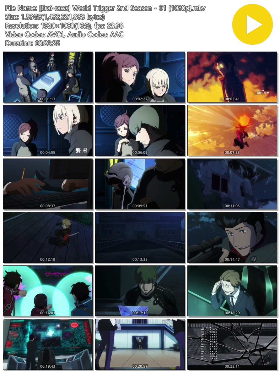 [Erai-raws] World Trigger 2nd Season - 01 [1080p].mkv 1.3 G 00:23:25 1920x1080