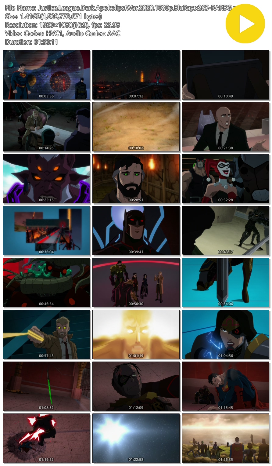 | Justice.League.Dark.Apokolips.War.2020.1080p.BluRay.x265-RARBG.mp4 | 1.4 G | 01:30:11 | 1920x1080 |