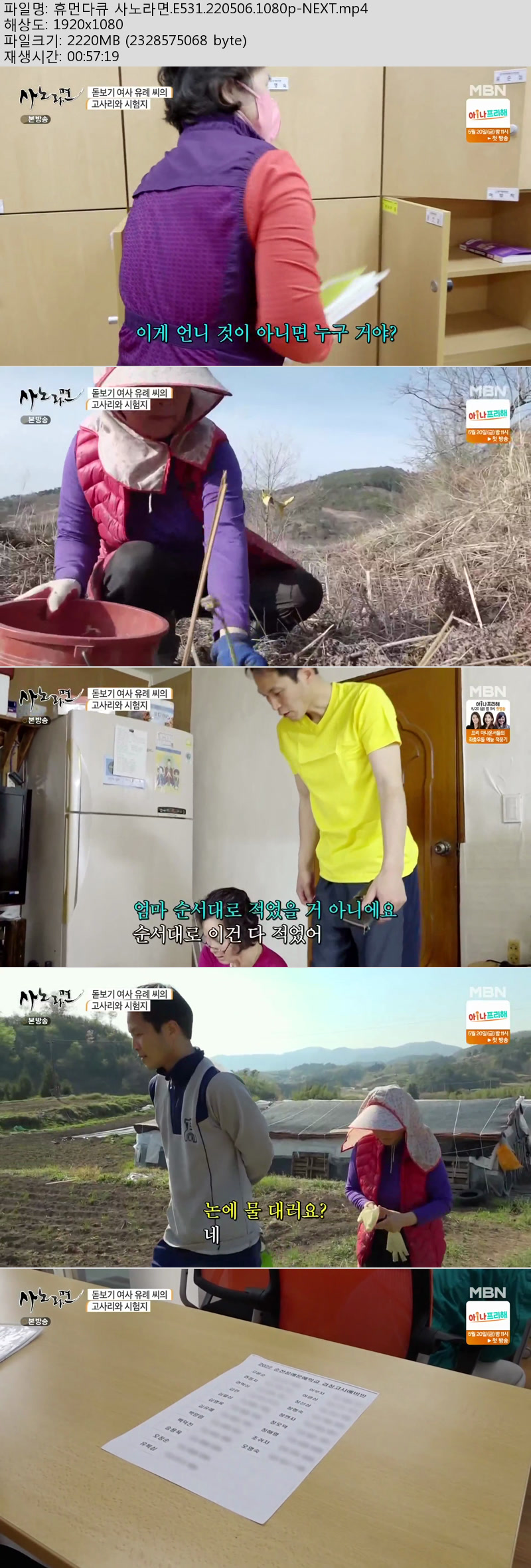 휴먼다큐 사노라면.E531.220506.1080p-NEXT.mp4 2.2 G - 1920x1080