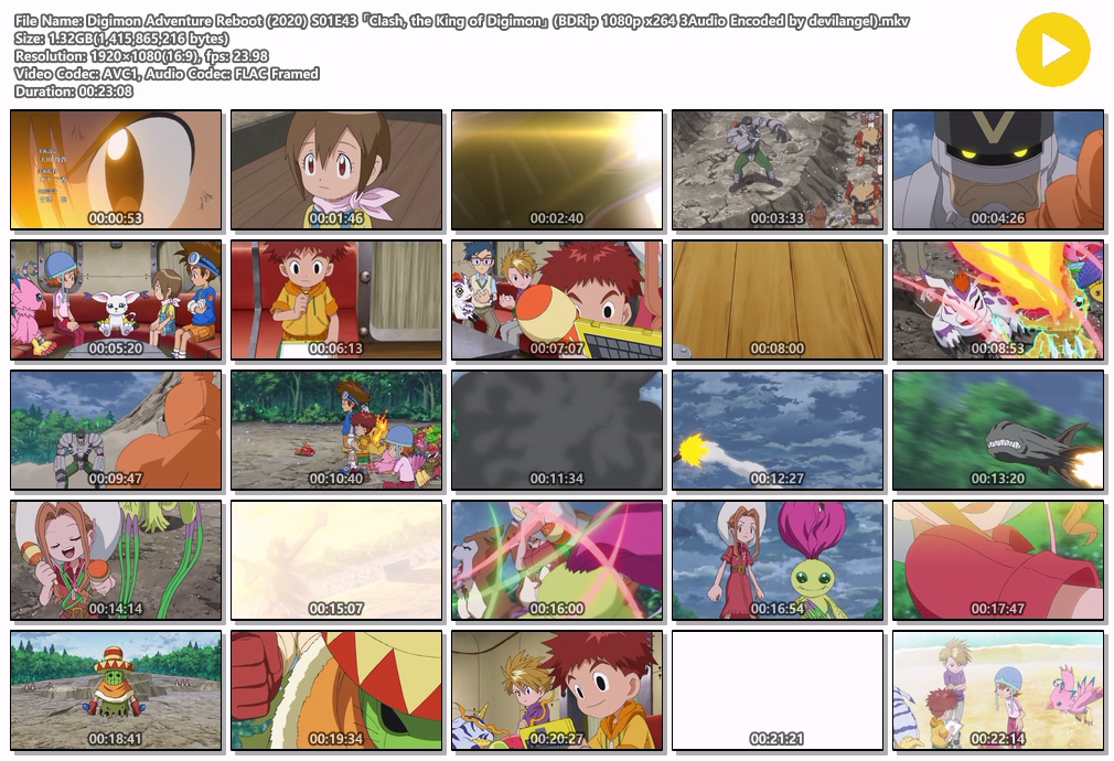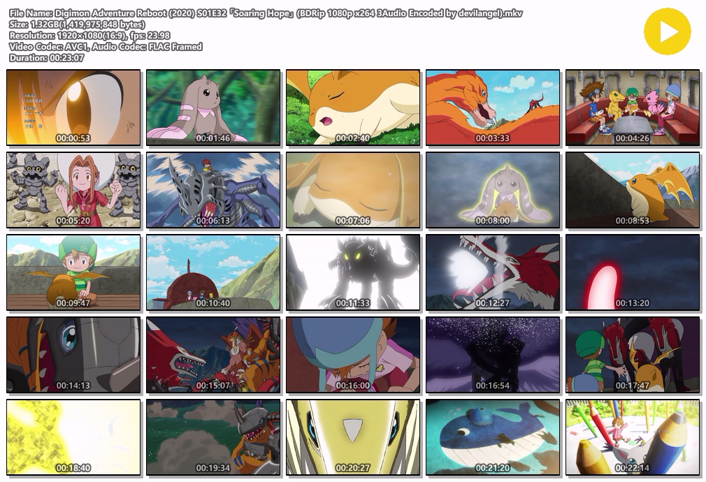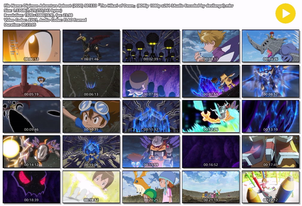 | Digimon Adventure Reboot (2020) S01E33 「The Hikari of Dawn」 (BDRip 1080p x264 3Audio Encoded by devilangel).mkv | 1.3 G | 00:23:05 | 1920x1080 |