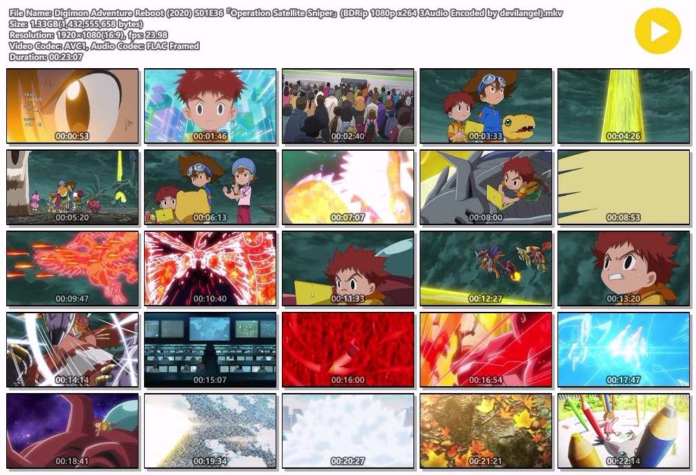 | Digimon Adventure Reboot (2020) S01E36 「Operation Satellite Sniper」 (BDRip 1080p x264 3Audio Encoded by devilangel).mkv | 1.3 G | 00:23:07 | 1920x1080 |