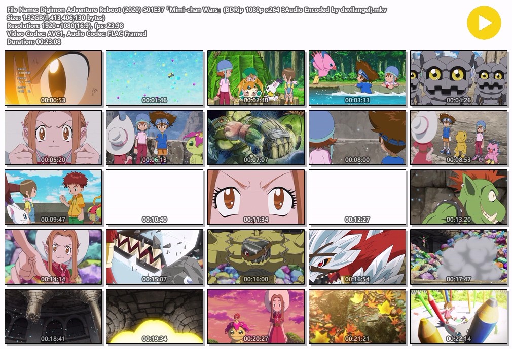 | Digimon Adventure Reboot (2020) S01E35 「The Glowing Angewomon」 (BDRip 1080p x264 3Audio Encoded by devilangel).mkv | 1.3 G | 00:23:07 | 1920x1080 |