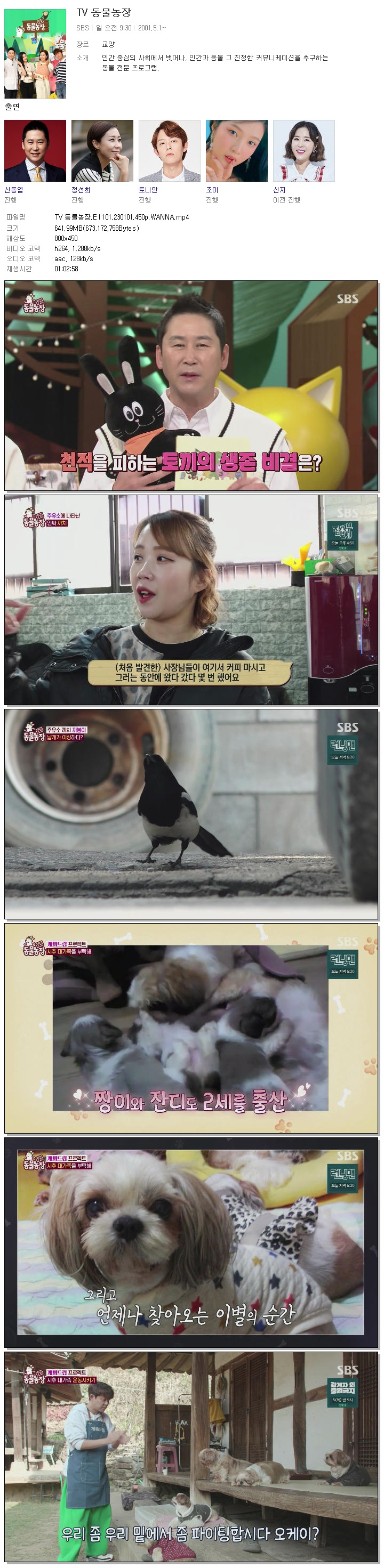 TV 동물농장.E1101.230101.450p.WANNA.mp4 642 M 01:02:58 800x450