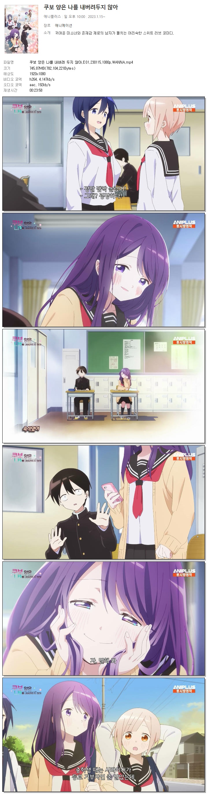 쿠보 양은 나를 내버려 두지 않아.E01.230115.1080p.WANNA 다시보기 토렌트