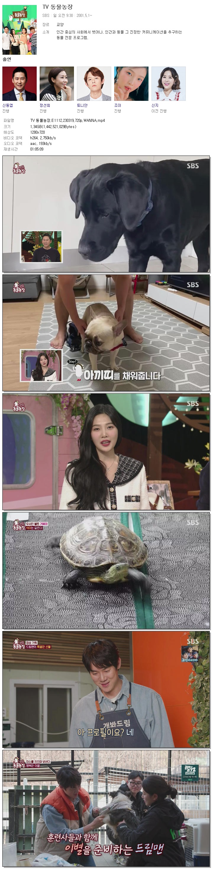 | TV 동물농장.E1112.230319.720p.WANNA.mp4 | 1.3 G | 01:05:09 | 1280x720 |