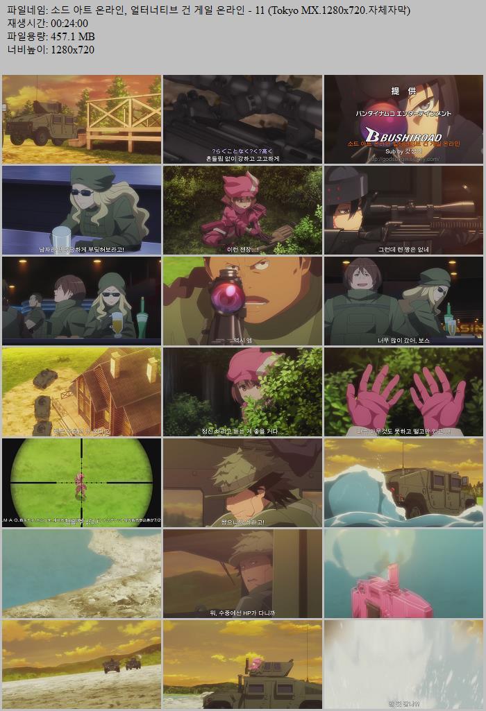 | 소드 아트 온라인, 얼터너티브 건 게일 온라인 - 11 (Tokyo MX.1280x720.자체자막).mp4 | 457.1 M | - | 1280x720 |