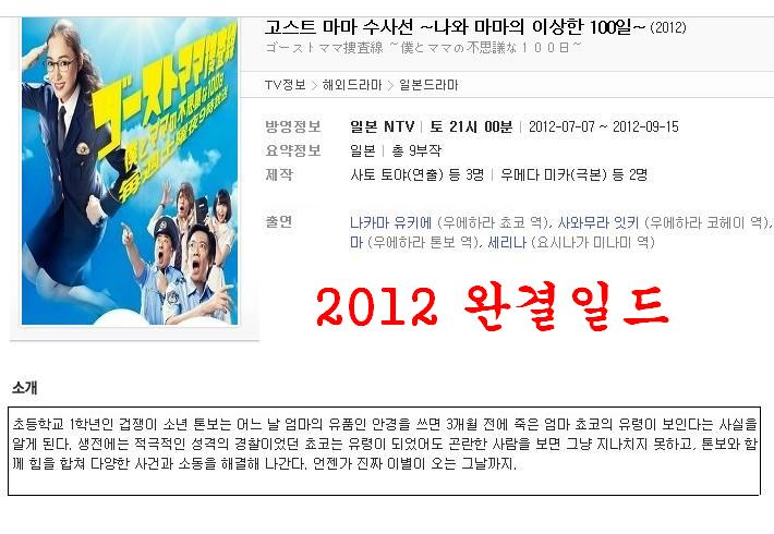 [고스트 마마 수사선 1화~9화(完)] - 2012 완결일드한글 -나카마 유키에 다시보기 토렌트