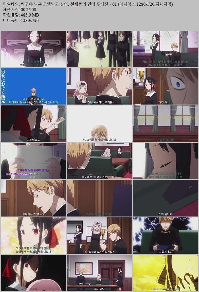 카구야 님은 고백받고 싶어, 천재들의 연애 두뇌전 - 01 (애니맥스.1280x720.자체자막) 다시보기 토렌트