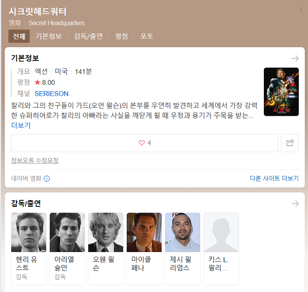 ico[ SF 미국영화 +12 ] 시크릿 헤드쿼터 2022 오웬 윌슨 외 (초고화질) 자체자막 2022/