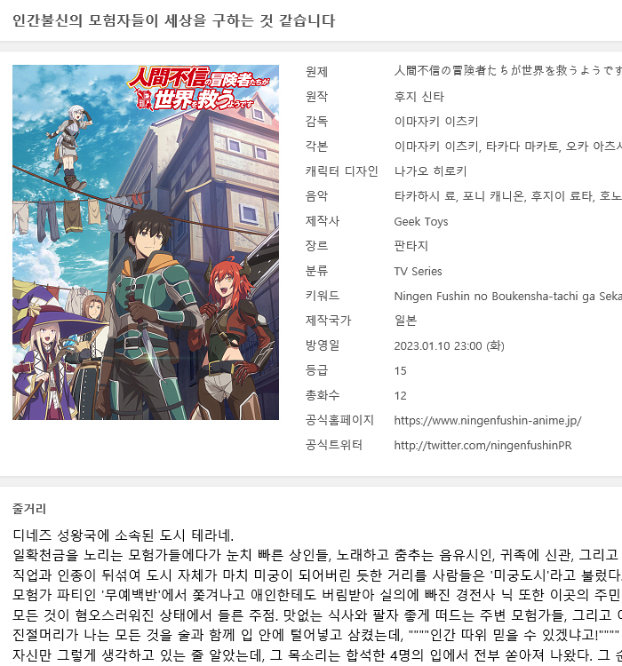 [인생] 인간 불신 모험가들이 세계를 구하는 듯합니다 01-12완결 -모험 능력 액션- 다시보기 토렌트