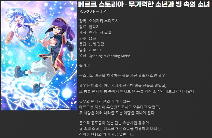[애니플러스] 메르크 스토리아 - 무기력한 소년과 병 속의 소녀.E12.END.200801.1080p-FHD 다시보기 토렌트