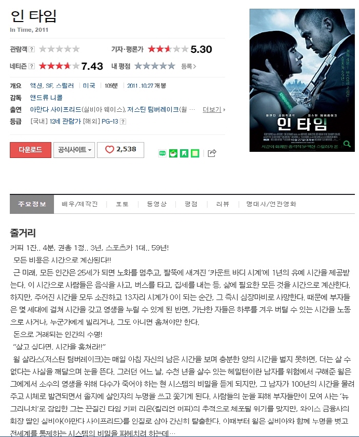 [ 시간이 돈이다 인 타임 2011 ] 한글자막 다시보기 토렌트