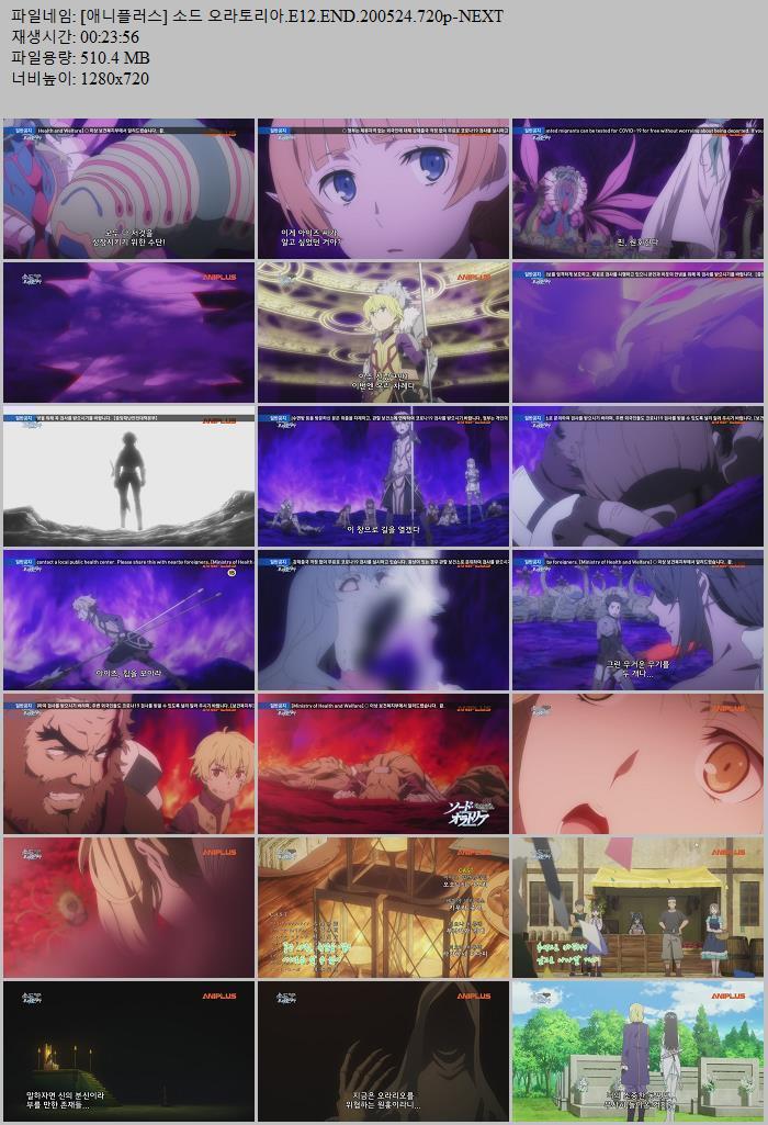 | [애니플러스] 소드 오라토리아.E12.END.200524.720p-NEXT.mp4 | 510.4 M | - | 1280x720 |