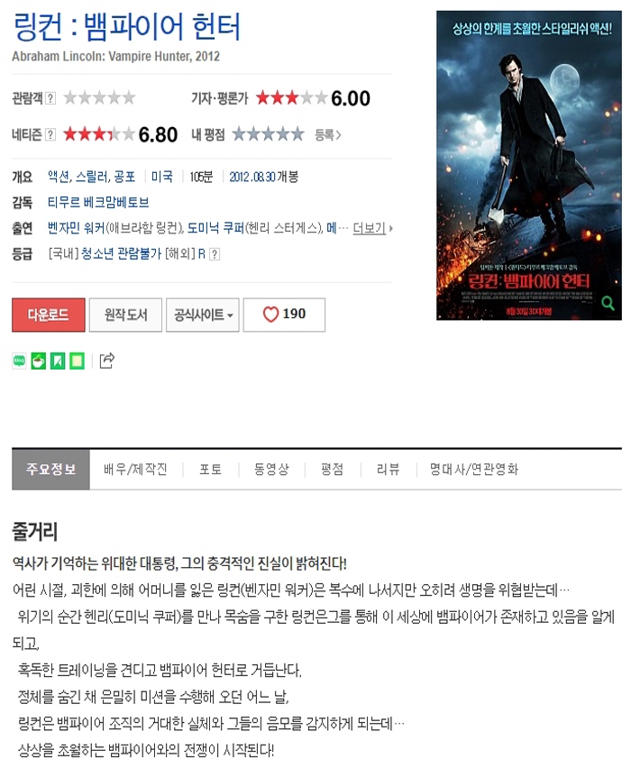 [ 링컨 뱀파이어 헌터 2012 ] 한글자막 다시보기 토렌트