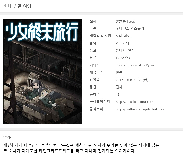[인생] 소녀 종말 여행 01-12완결 [SP 포함] -모험 일상 코믹 드라마- 다시보기 토렌트