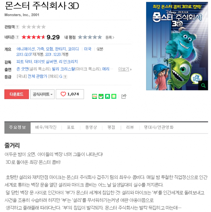 몬스터 주식회사 3D (2001년)[극장판]-우리말더빙 다시보기 토렌트