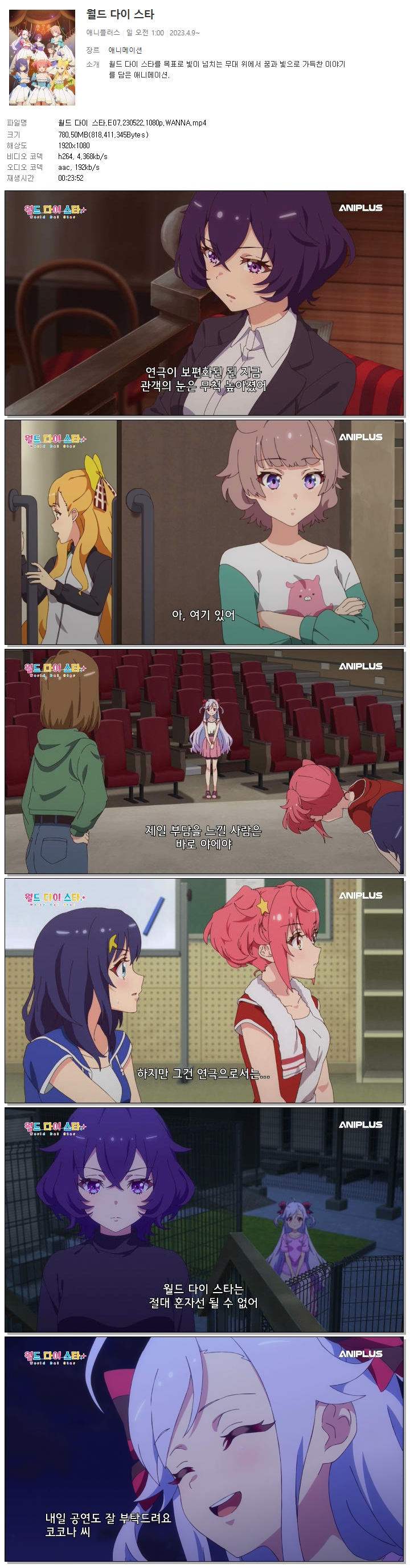 월드 다이 스타.E07.230522.1080p.WANNA.mp4 780.5 M 00:23:52 1920x1080