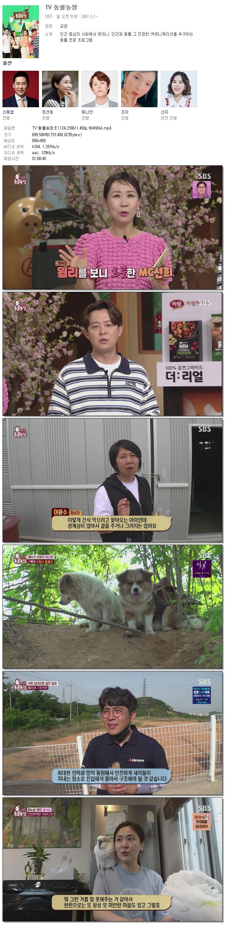 | TV 동물농장.E1124.230611.450p.WANNA.mp4 | 699.5 M | 01:08:40 | 800x450 |