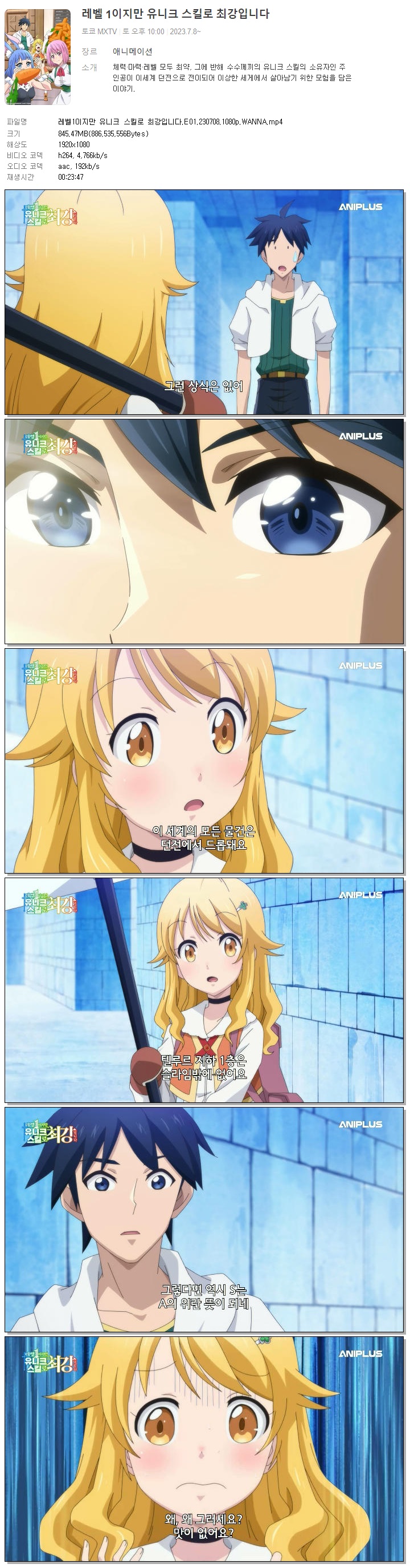 레벨1이지만 유니크 스킬로 최강입니다.E01.230708.1080p.WANNA 다시보기 토렌트